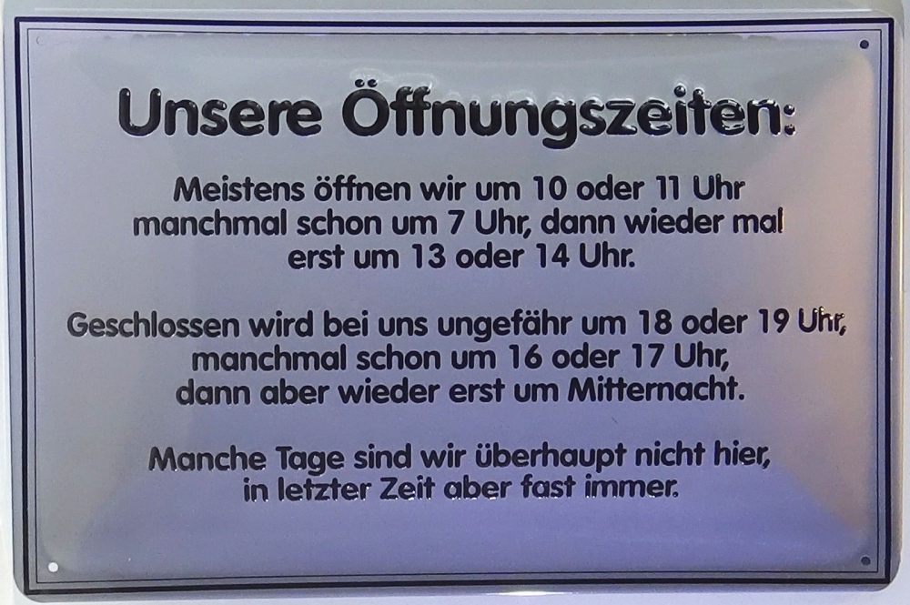 Blechschild - UNSERE ÖFFNUNGSZEITEN